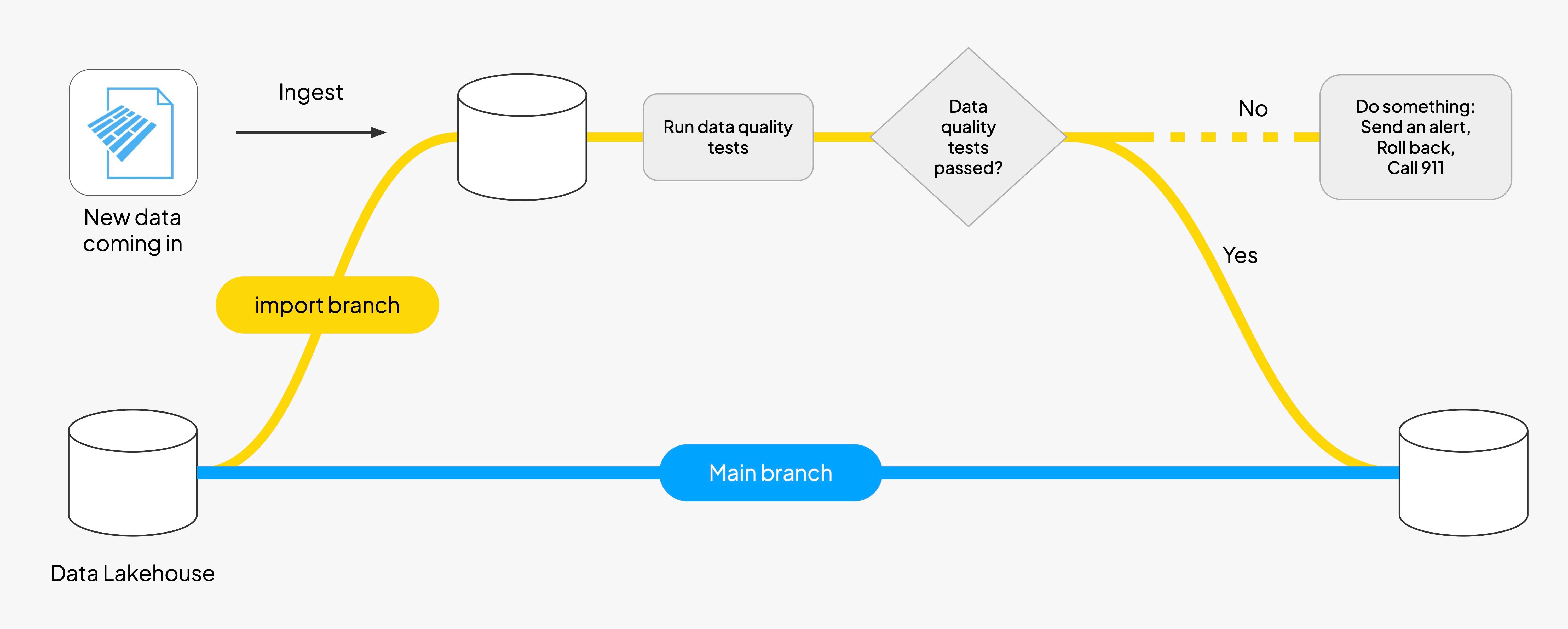 - Publish: Only data that passes the audit is merged into the main data branch for wider use and consumption by other systems.